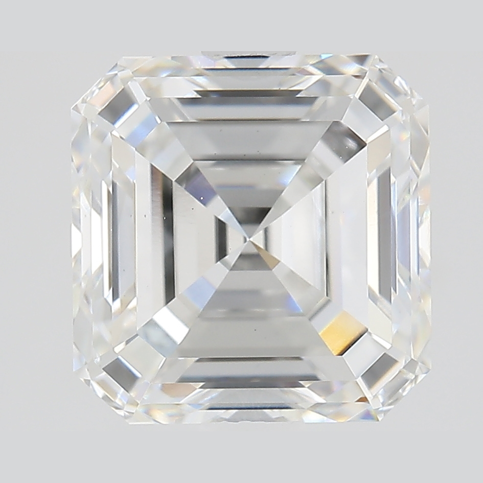 A labexcellentcreated 2.75 carat, asscher cut diamond, color grade F (colorless), clarity grade VS1 (very slightly included).A type IIa diamond certified by the International Gemological Institute (IGI).