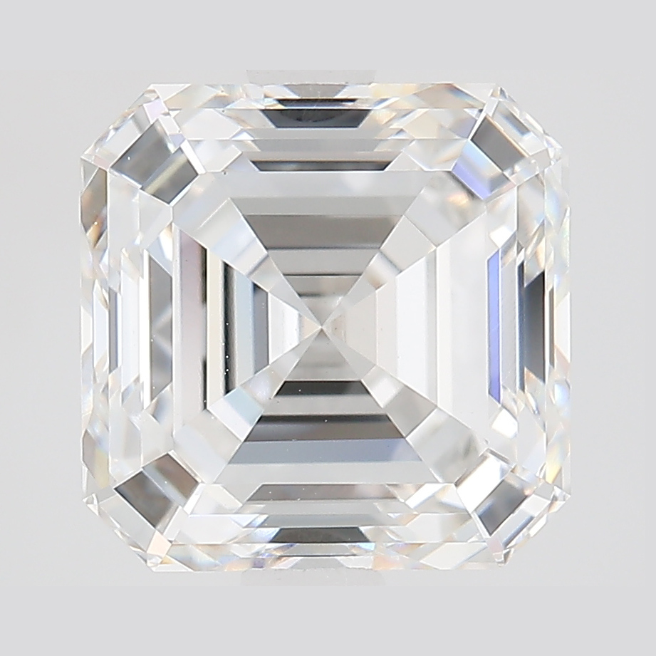 A labexcellentcreated 3.23 carat, asscher cut diamond, color grade E (colorless), clarity grade VS1 (very slightly included).A type IIa diamond certified by the International Gemological Institute (IGI).