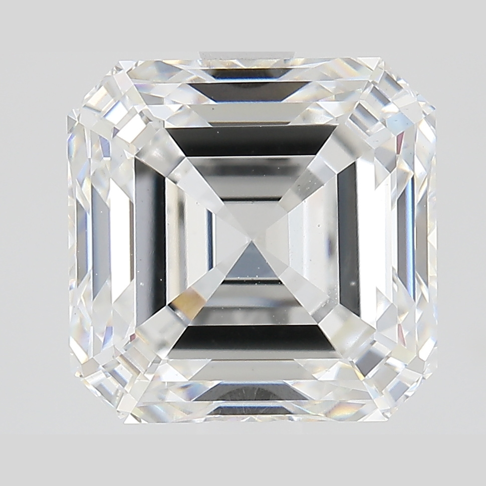 A labexcellentcreated 3.24 carat, asscher cut diamond, color grade E (colorless), clarity grade VS1 (very slightly included).A type IIa diamond certified by the International Gemological Institute (IGI).