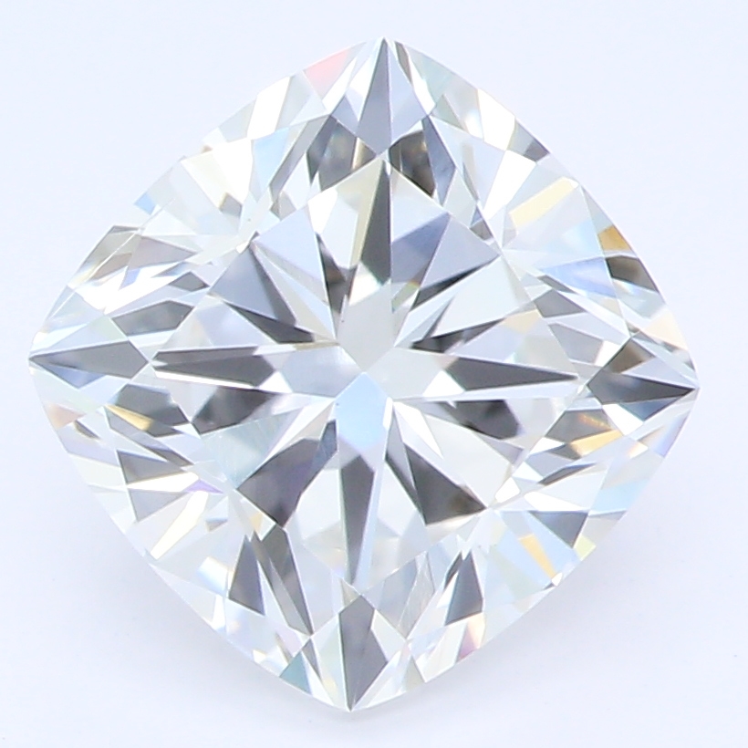 A lab-created 1.92 carat, cushion brilliant cut diamond, color grade E (colorless), clarity grade SI1 (slightly included).A type IIa diamond certified by the International Gemological Institute (IGI).