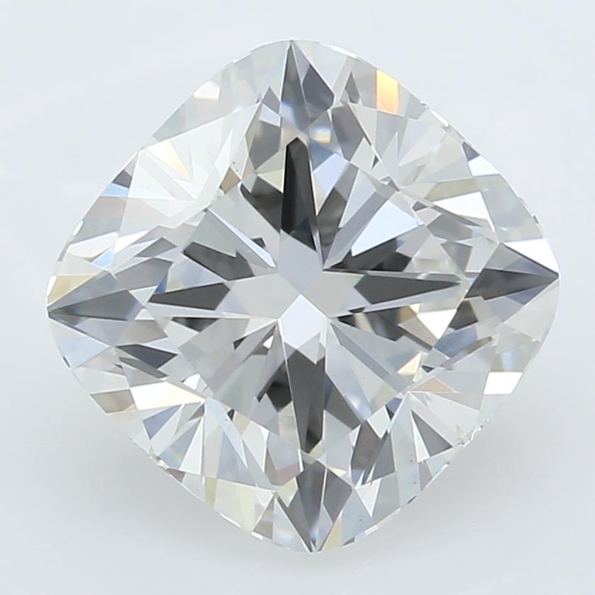 A lab-created 1.93 carat, cushion brilliant cut diamond, color grade G (near colorless), clarity grade VS1 (very slightly included).A type IIa diamond certified by the International Gemological Institute (IGI).