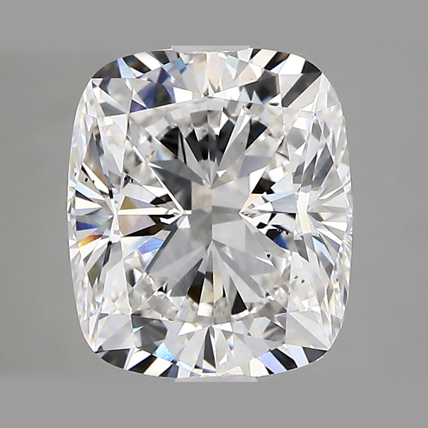 A labexcellentcreated 3.24 carat, cushion brilliant cut diamond, color grade F (colorless), clarity grade SI1 (slightly included).A type IIa diamond certified by the Gemological Institute of America (GIA).