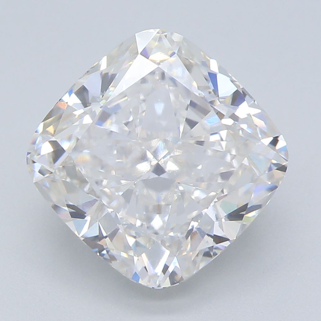 A labexcellentcreated 3.38 carat, cushion brilliant cut diamond, color grade G (near colorless), clarity grade VS1 (very slightly included).A type IIa diamond certified by the International Gemological Institute (IGI).