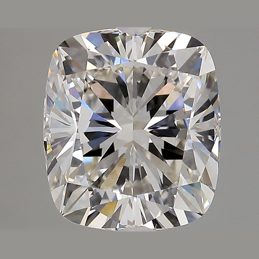 A labexcellentcreated 3.4 carat, cushion brilliant cut diamond, color grade H (near colorless), clarity grade VVS2 (very very slightly included).A type IIa diamond certified by the International Gemological Institute (IGI).