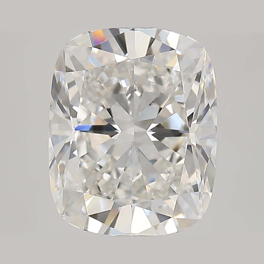 A labexcellentcreated 4.08 carat, cushion brilliant cut diamond, color grade G (near colorless), clarity grade VS1 (very slightly included).A type IIa diamond certified by the International Gemological Institute (IGI).