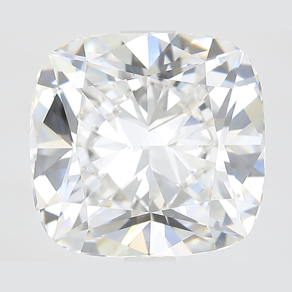A labexcellentcreated 4.6 carat, cushion brilliant cut diamond, color grade E (colorless), clarity grade VS1 (very slightly included).A type IIa diamond certified by the International Gemological Institute (IGI).