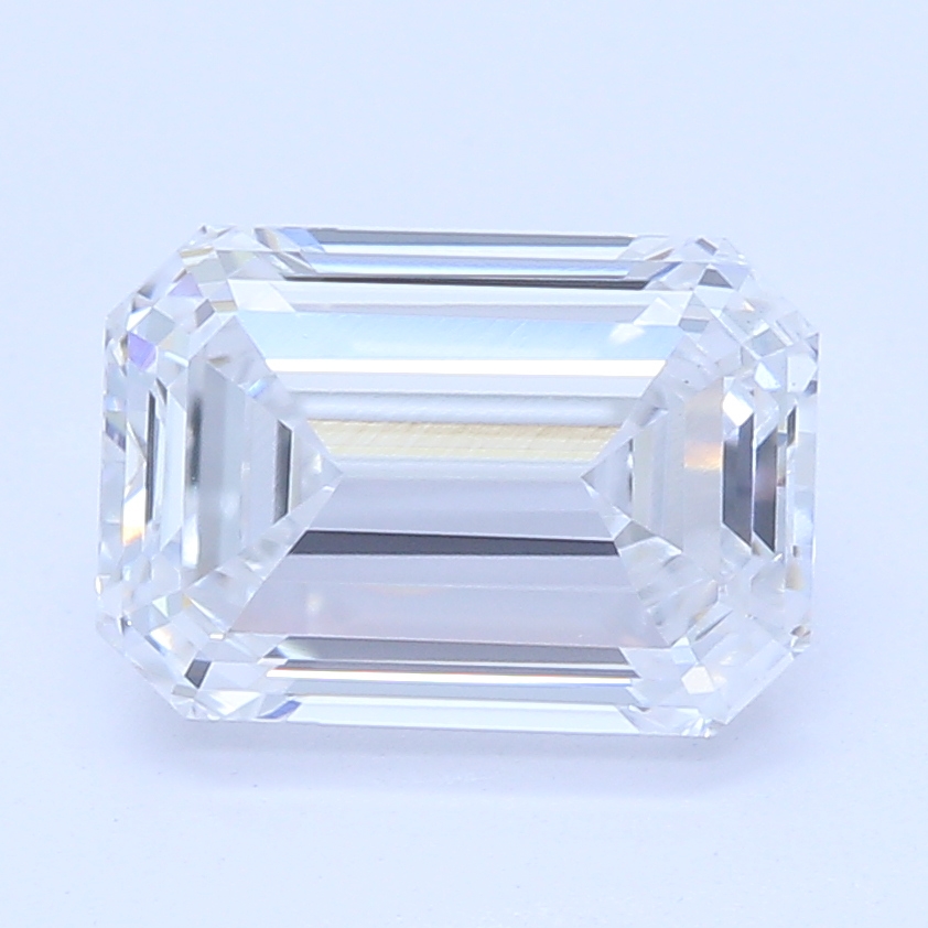 A lab-created 1.06 carat, emerald cut diamond, color grade D (colorless), clarity grade VS1 (very slightly included).A type IIa diamond certified by the International Gemological Institute (IGI).