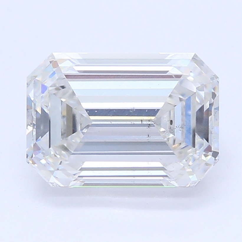 A lab-created 1.42 carat, emerald cut diamond, color grade F (colorless), clarity grade SI1 (slightly included).A type IIa diamond certified by the International Gemological Institute (IGI).