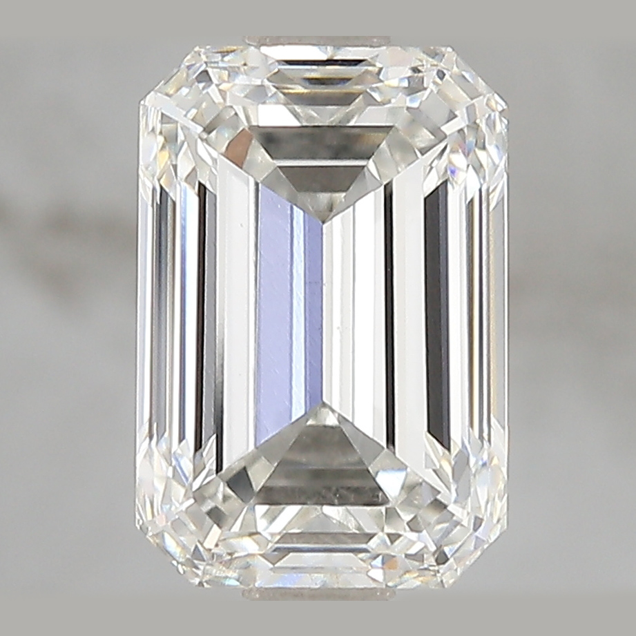 A labexcellentcreated 3.02 carat, emerald cut diamond, color grade G (near colorless), clarity grade VS1 (very slightly included).A type IIa diamond certified by the International Gemological Institute (IGI).