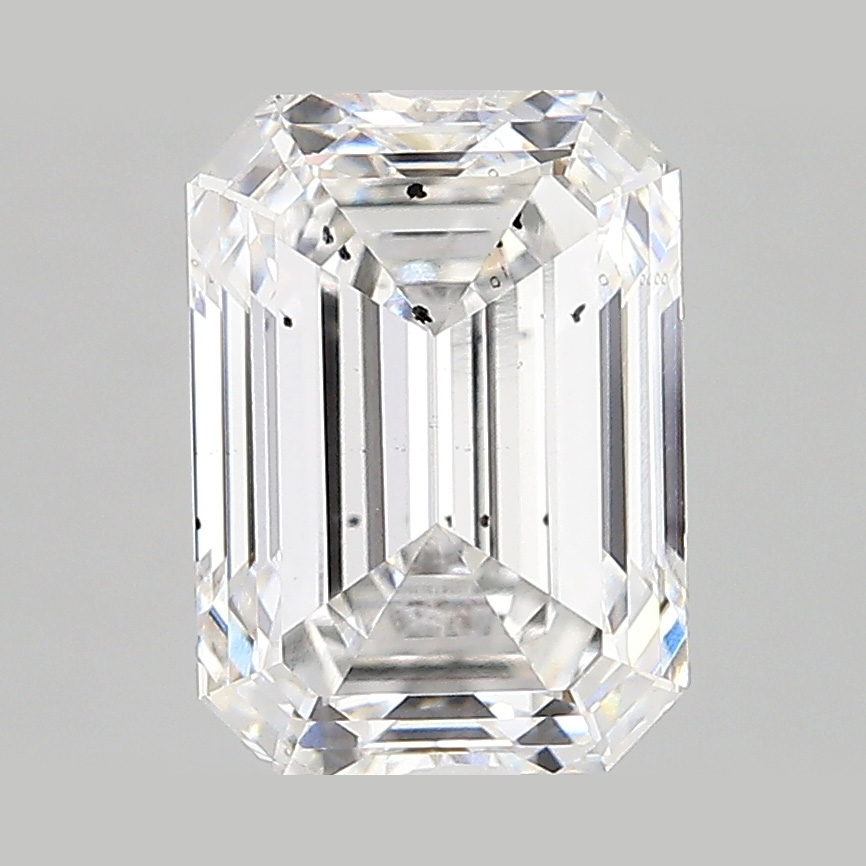 A labexcellentcreated 3.21 carat, emerald cut diamond, color grade F (colorless), clarity grade SI1 (slightly included).A type IIa diamond certified by the International Gemological Institute (IGI).
