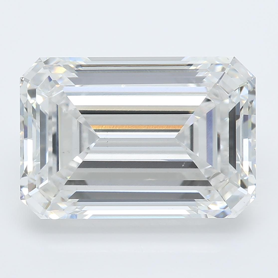 A lab-created 4.06 carat, emerald cut diamond, color grade E (colorless), clarity grade VS1 (very slightly included).A type IIa diamond certified by the The Gemological Institute of America (GIA).