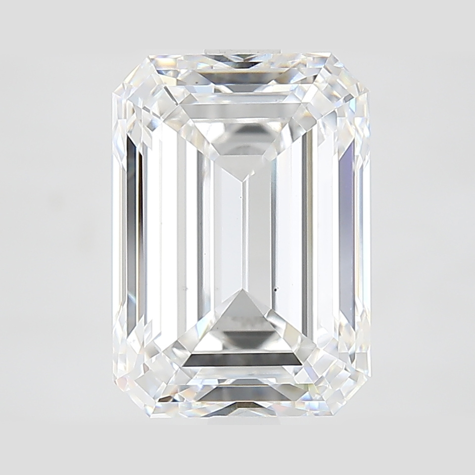 A labexcellentcreated 4.71 carat, emerald cut diamond, color grade D (colorless), clarity grade VS1 (very slightly included).A type IIa diamond certified by the International Gemological Institute (IGI).