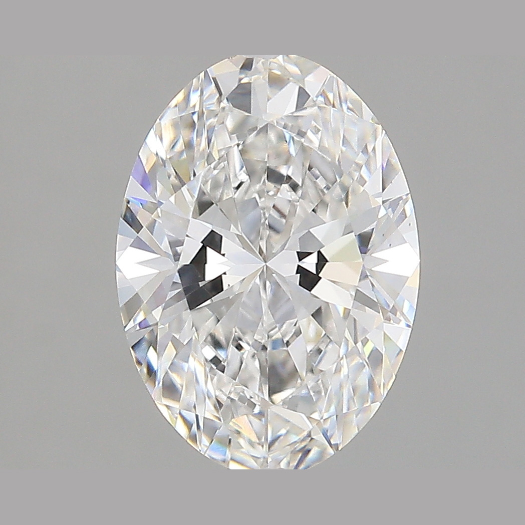 A lab-created 2.77 carat, oval brilliant cut diamond, color grade F (colorless), clarity grade VS2 (very slightly included).A type IIa diamond certified by the The Gemological Institute of America (GIA).