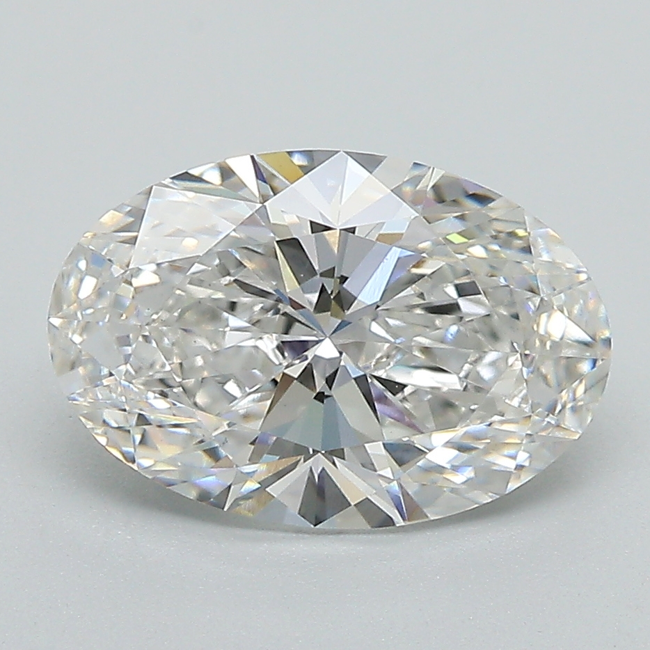 A labexcellentcreated 3.02 carat, oval brilliant cut diamond, color grade G (near colorless), clarity grade VS1 (very slightly included).A type IIa diamond certified by the International Gemological Institute (IGI).