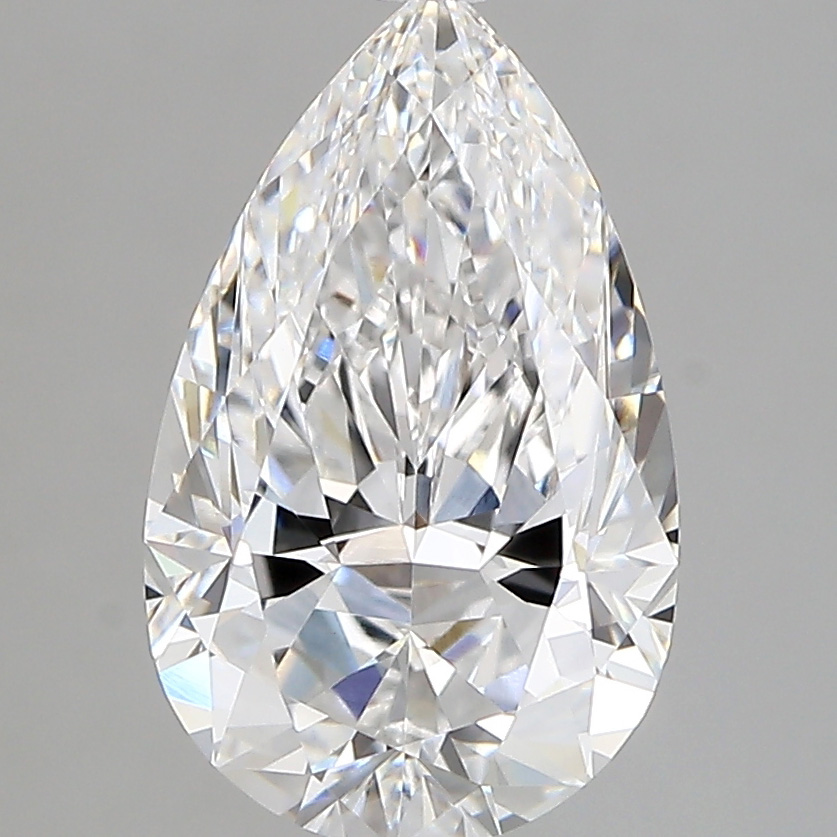 A labexcellentcreated 2.62 carat, pear brilliant cut diamond, color grade D (colorless), clarity grade VVS2 (very very slightly included).A type IIa diamond certified by the International Gemological Institute (IGI).