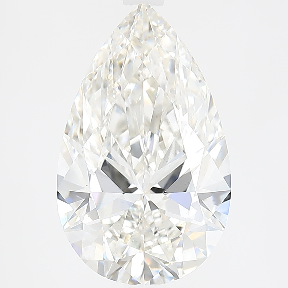 A labexcellentcreated 4 carat, pear brilliant cut diamond, color grade G (near colorless), clarity grade VS1 (very slightly included).A type IIa diamond certified by the International Gemological Institute (IGI).
