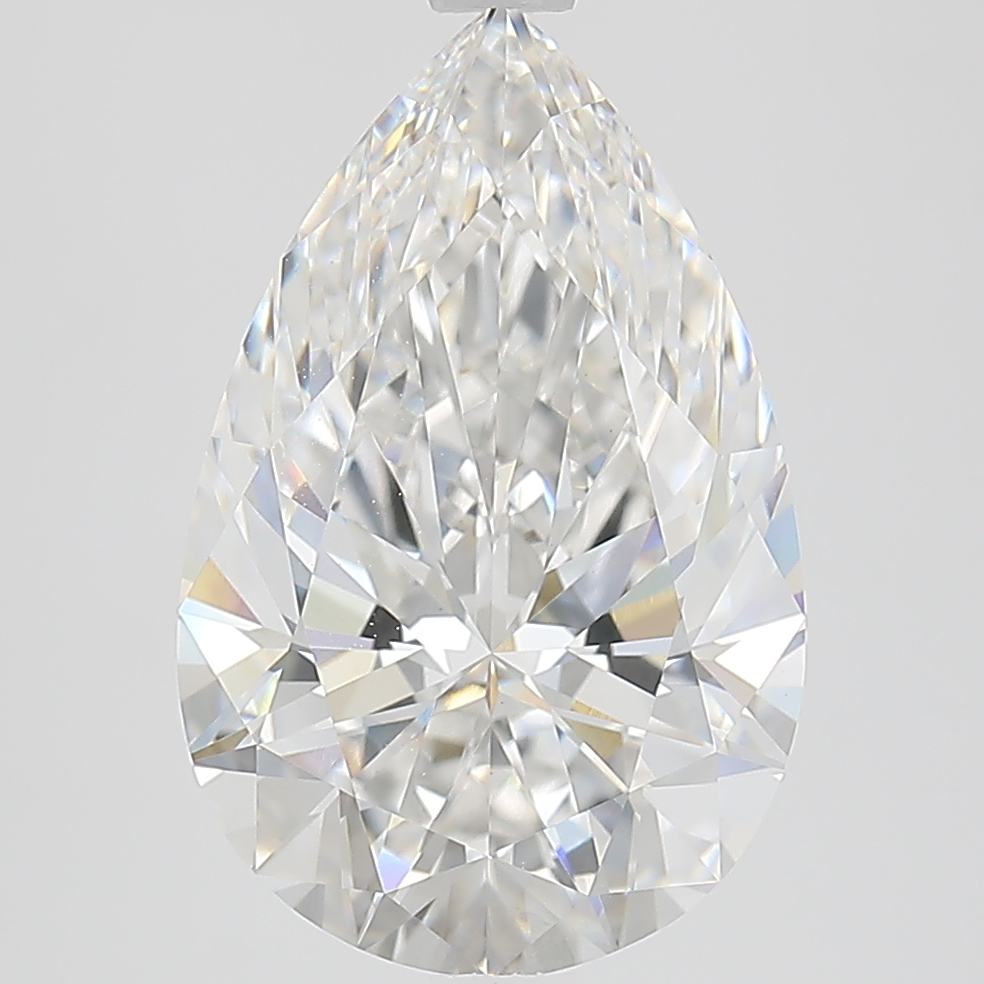 A labexcellentcreated 4.71 carat, pear brilliant cut diamond, color grade E (colorless), clarity grade VVS2 (very very slightly included).A type IIa diamond certified by the International Gemological Institute (IGI).
