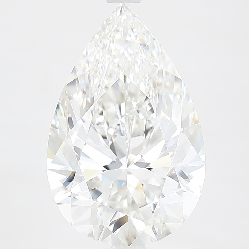 A labexcellentcreated 5 carat, pear brilliant cut diamond, color grade G (near colorless), clarity grade VVS2 (very very slightly included).A type IIa diamond certified by the International Gemological Institute (IGI).