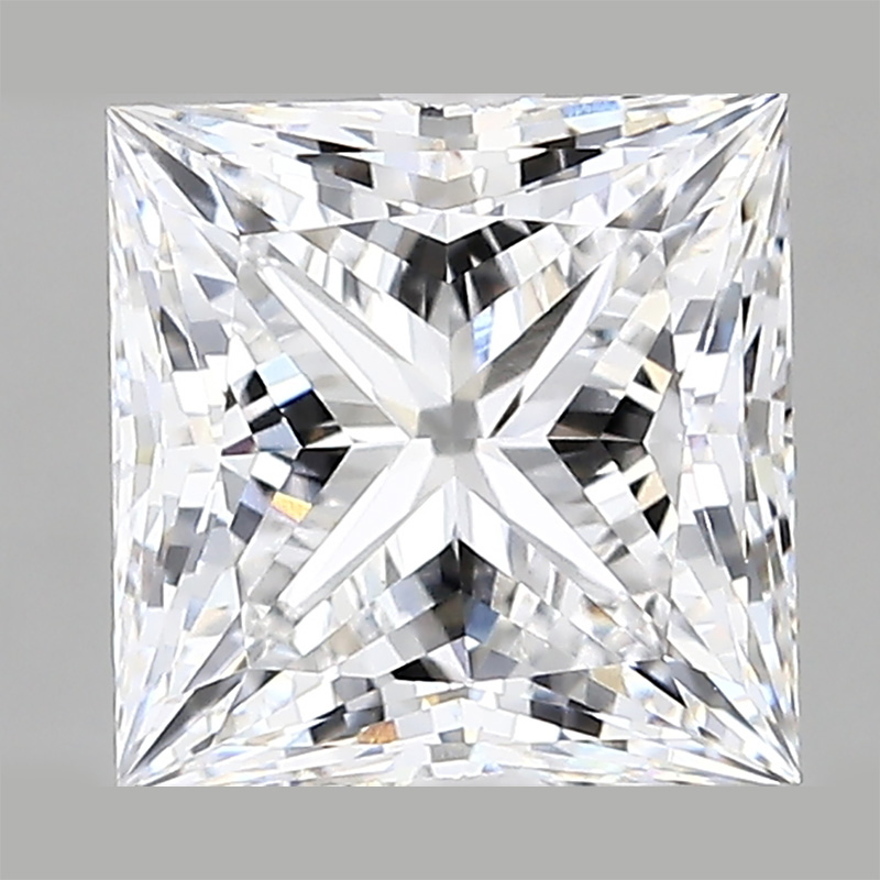 A labexcellentcreated 2.52 carat, princess brilliant cut diamond, color grade D (colorless), clarity grade VVS2 (very very slightly included).A type IIa diamond certified by the International Gemological Institute (IGI).