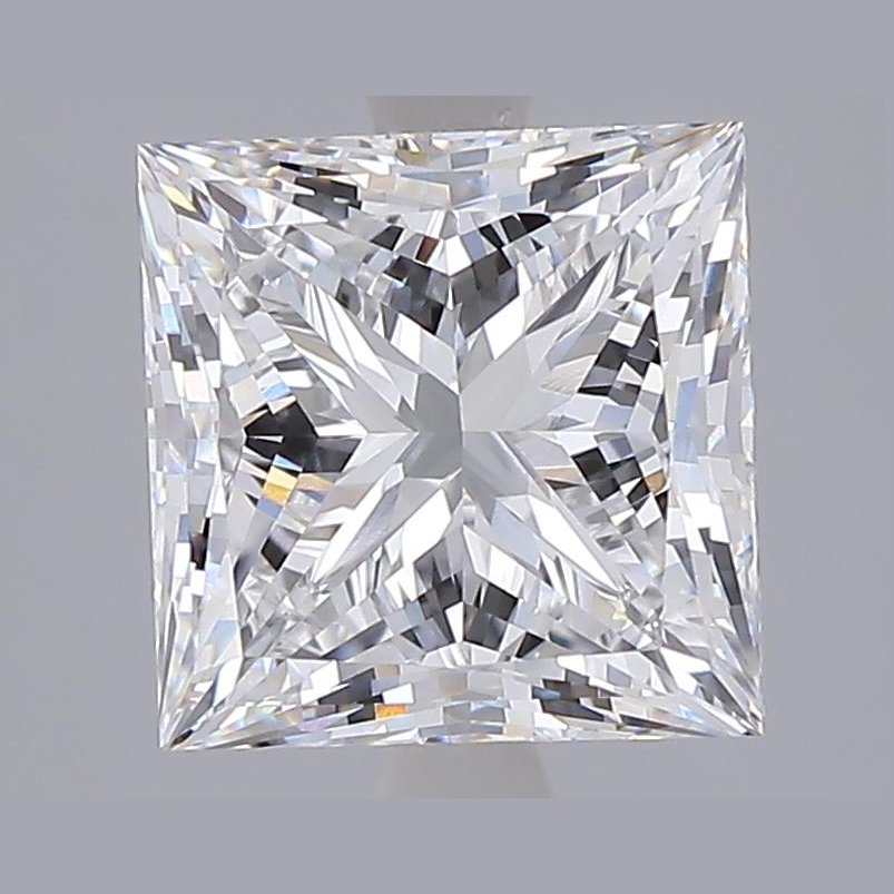 A labexcellentcreated 3.09 carat, princess brilliant cut diamond, color grade D (colorless), clarity grade VVS1 (very very slightly included).A type IIa diamond certified by the International Gemological Institute (IGI).