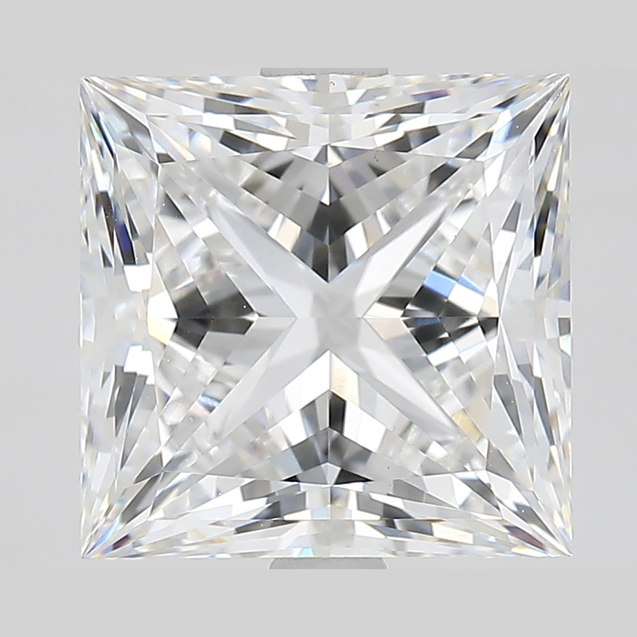 A labexcellentcreated 4.01 carat, princess brilliant cut diamond, color grade E (colorless), clarity grade VS1 (very slightly included).A type IIa diamond certified by the International Gemological Institute (IGI).