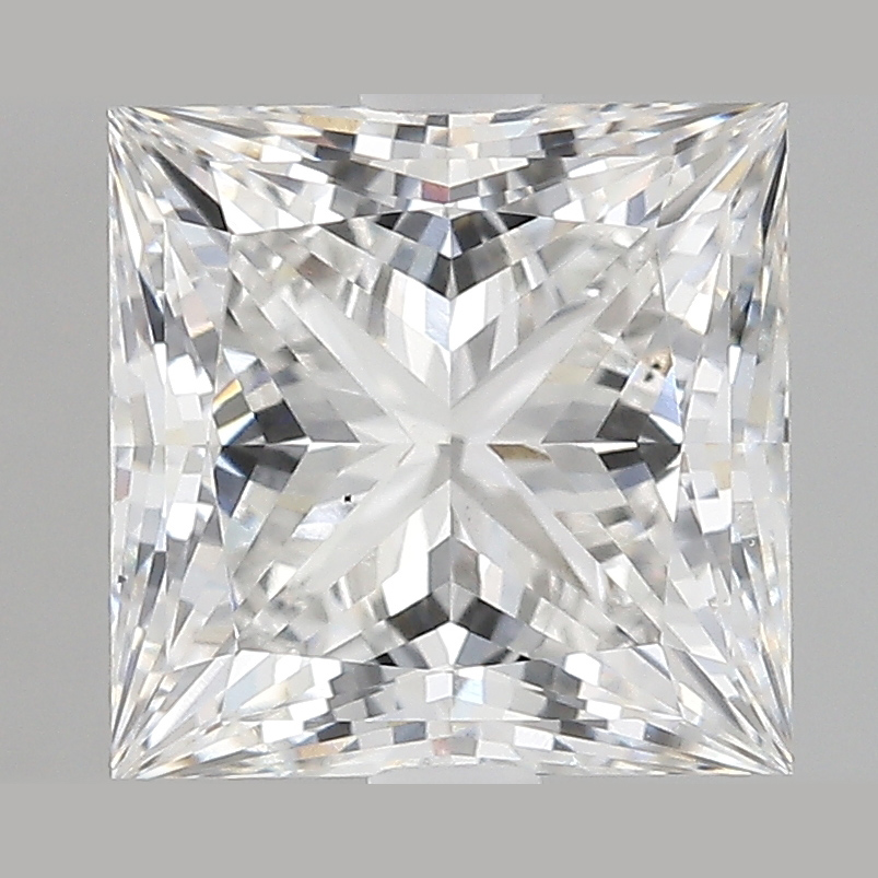 A lab-created 4.09 carat, princess brilliant cut diamond, color grade G (near colorless), clarity grade VS2 (very slightly included).A type IIa diamond certified by the International Gemological Institute (IGI).