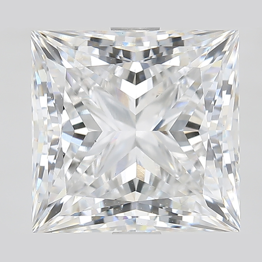 A labexcellentcreated 4.54 carat, princess brilliant cut diamond, color grade E (colorless), clarity grade VS1 (very slightly included).A type IIa diamond certified by the International Gemological Institute (IGI).