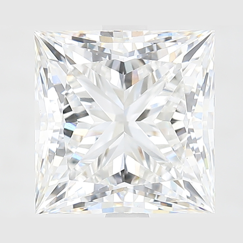 A labexcellentcreated 4.6 carat, princess brilliant cut diamond, color grade F (colorless), clarity grade VVS2 (very very slightly included).A type IIa diamond certified by the International Gemological Institute (IGI).