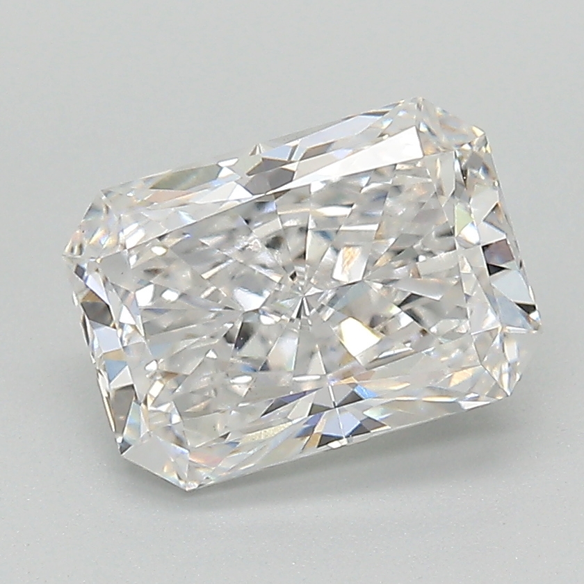 A labexcellentcreated 2.04 carat, radiant brilliant cut diamond, color grade D (colorless), clarity grade VVS2 (very very slightly included).A type IIa diamond certified by the International Gemological Institute (IGI).