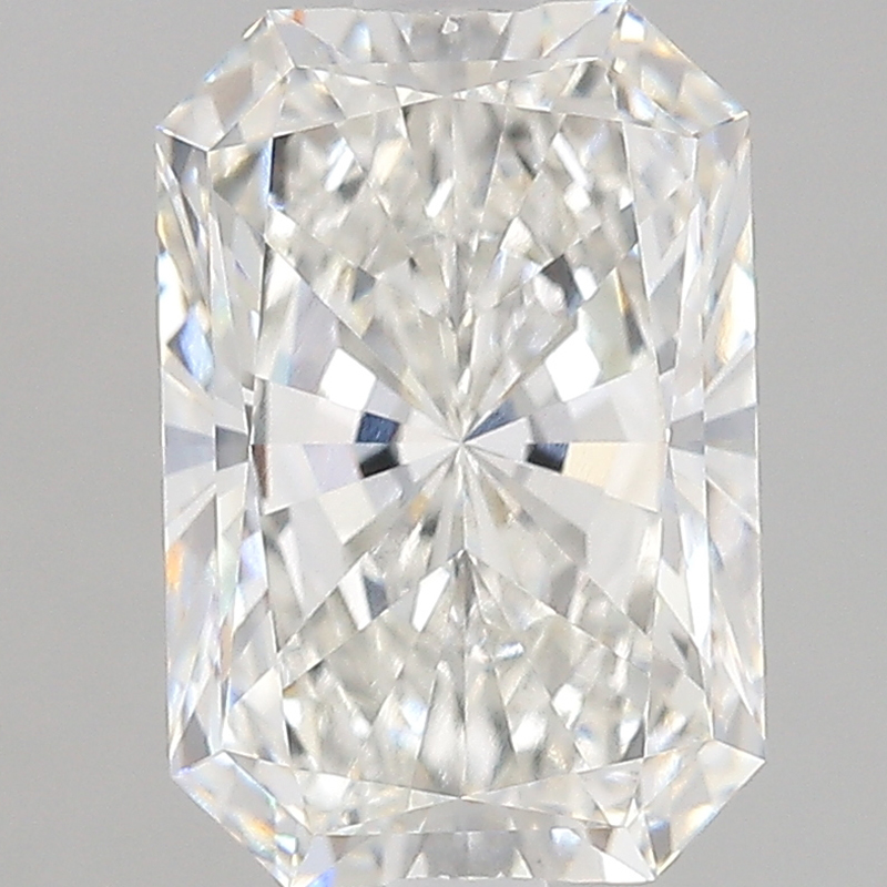 A lab-created 3.6 carat, radiant brilliant cut diamond, color grade H (near colorless), clarity grade VVS2 (very very slightly included).A type IIa diamond certified by the International Gemological Institute (IGI).