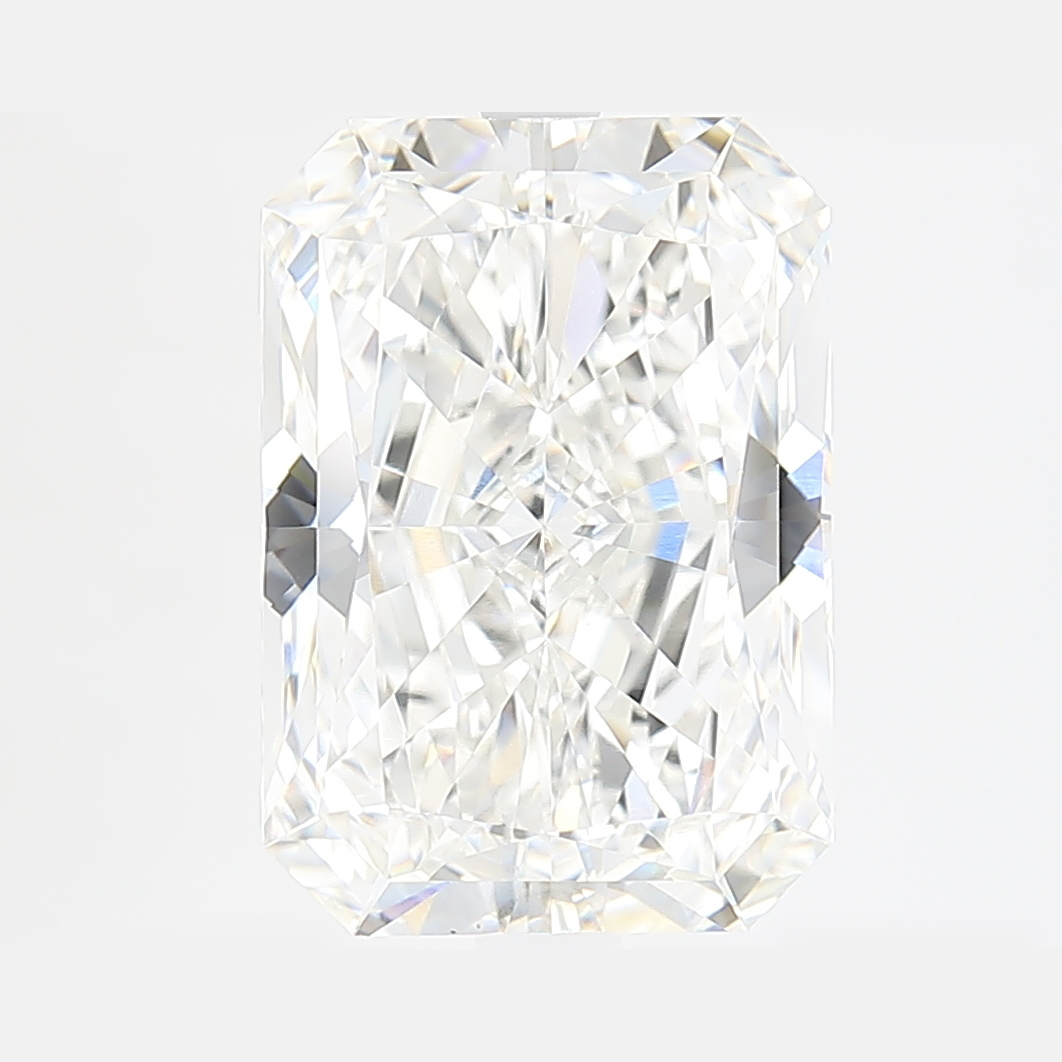 A labexcellentcreated 5 carat, radiant brilliant cut diamond, color grade G (near colorless), clarity grade VS1 (very slightly included).A type IIa diamond certified by the International Gemological Institute (IGI).