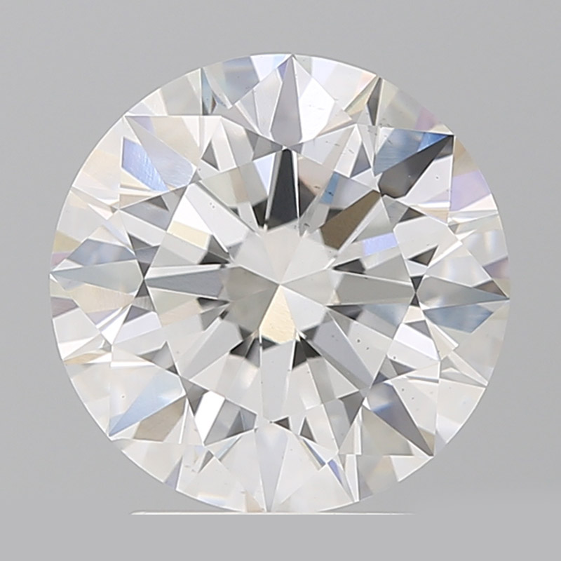 A lab-created 3.07 carat, round brilliant cut diamond, color grade E (colorless), clarity grade VS1 (very slightly included).A type IIa diamond certified by the International Gemological Institute (IGI).