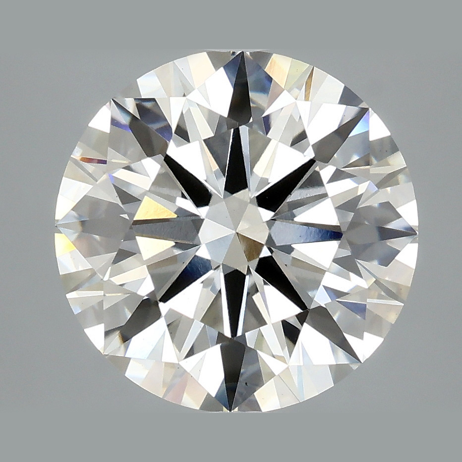 A lab-created 4.76 carat, round brilliant cut diamond, color grade H (near colorless), clarity grade VS1 (very slightly included).A type IIa diamond certified by the International Gemological Institute (IGI).