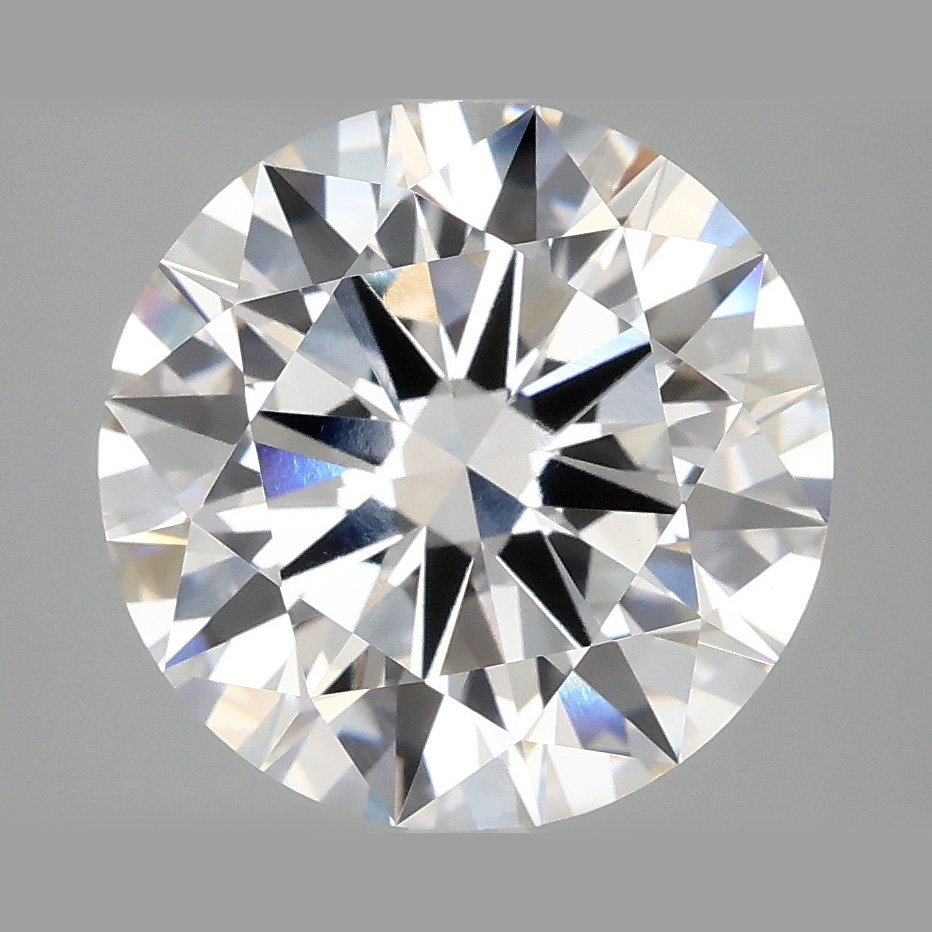 A lab-created 4.81 carat, round brilliant cut diamond, color grade E (colorless), clarity grade VVS2 (very very slightly included).A type IIa diamond certified by the International Gemological Institute (IGI).